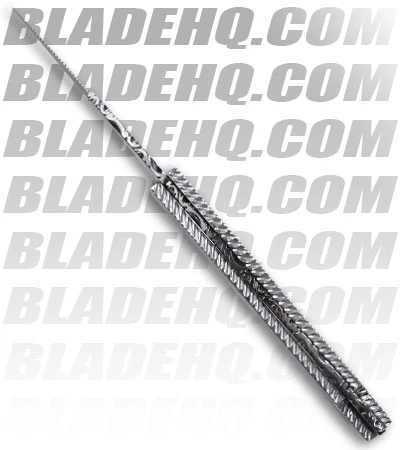 This Blackie Collins designed folding knife from Paragon has been customized by Michael Prater of Painted Pony design. The polished AUS-8 blade from Seki-City Japan has been custom filed along the spine and handle as well (see picture #4). The handles are beautifully crafted with turquoise Malachite inlays. This knife comes with a walnut display case and certificate of authenticity.
