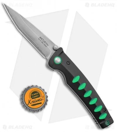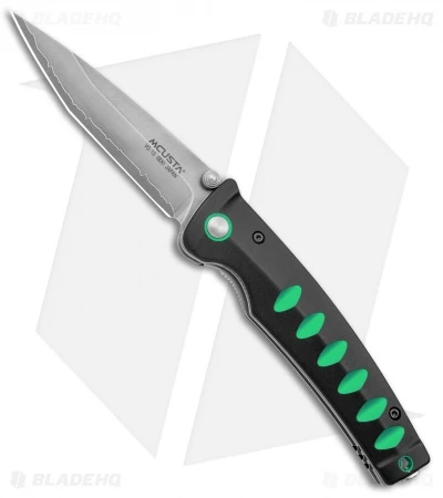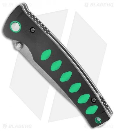 - Black aluminum handle with green accents.
