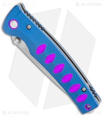 - Blue aluminum handle with purple accents.