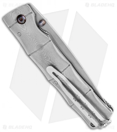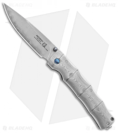 This Mcusta MC-0202G Shinra Maxima is the perfect gentleman’s knife. It features an elaborate Damasteel handle forged in to a bamboo shape. The double thumb-stud makes opening with either your left hand or right hand very simple. The blade is a drop point style made from SPG2 stainless steel.
