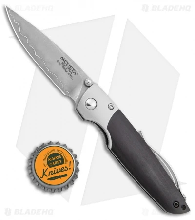 This Mcusta Shinra Teana MC-144G model is outfitted with a Japanese SPG2 powdered steel blade and a black pakkawood handle with silver stainless steel bolsters. The Mcusta MC-144G is a stylish gentlemen’s folder designed to serve all of your EDC needs.