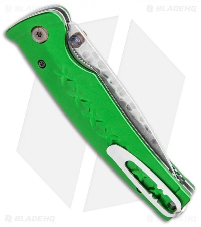 The Tsuchi Japanese Bushi Sword knife from Mcusta features an anodized aluminum handle and hammered 33 layered nickel Damascus blade with a VG-10 core. The pivot pin teflon washer system makes the blade action silky smooth. Features an anodized pivot pin and ambidextrous thumbstud for one hand opening with liner lock.