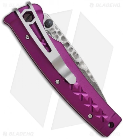 The Tsuchi Japanese Bushi Sword knife from Mcusta features an anodized aluminum handle and hammered 33 layered nickel Damascus blade with a VG-10 core. The pivot pin teflon washer system makes the blade action silky smooth. Features an anodized pivot pin and ambidextrous thumbstud for one hand opening with liner lock. Includes a decorative woven Nishijin pouch. All these knives are hand finished, so the quality is of the highest caliber.