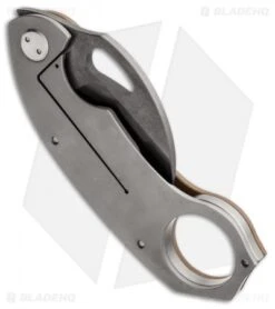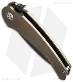 The knife features a coyote brown G-10 handle, tumbled titanium frame lock and a D2 steel blade with unique Vulcan finish. No two blade finishes will be the same and it will vary from the one pictured. Some are dark, some are light and some are multi-colored.