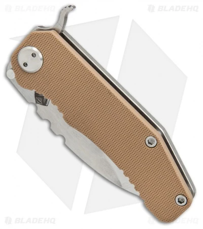 This 187 model features a coyote G-10 handle, tumbled titanium frame lock and a D2 steel blade with a tumbled stonewash finish.