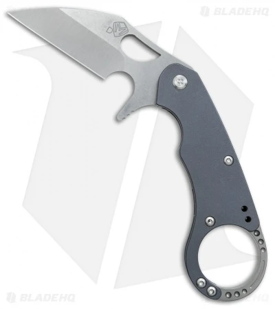 The Burung from Medford Knife & Tool offers an innovative Karambit design with a thumb hole and a wharncliffe style blade. Blue anodized titanium scales add an elegant touch, with a titanium frame lock for safe, secure lock up. The D2 steel blade comes in a satin finish and includes a thumb hole and a flipper for quick deployment. The Burung is a superb utility knife with a collection worthy design. Includes a right hand tip-up carry pocket clip. Comes in a waterproof case.