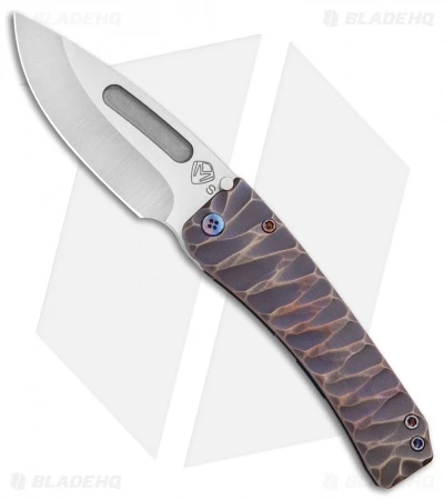 The Midi Marauder from Medford Knife & Tool gets its name from the Z-26 Marauder, known for its awesome firepower and toughness. This is a scaled down version of the popular Marauder knife, with a custom grooved/bronze anodized titanium handle and a matching frame lock. Its blade is made from S35VN steel in a satin finish. Includes a flamed pocket clip. Comes in a waterproof case.