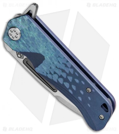 The Medford Proxima is a more pocket friendly alternative to the massive Gigantes folding knife. This Custom Proxima model is built with a sculpted light blue titanium frame lock handle and a tumbled CPM-S35VN stainless steel blade. All materials are made from 3/16″ nominal stock to keep the knife in a comfortable EDC range.