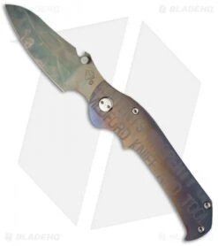 This custom TFF-3 from Medford Knife & Tool features a treated, colored D2 steel blade with a bottle opener on the spine. The handle is made up of anodized aluminum and titanium slabs. The front is smooth and stenciled while the framelock is textured. This Custom TFF-3 is a unique knife with an excellent build and solid performance.