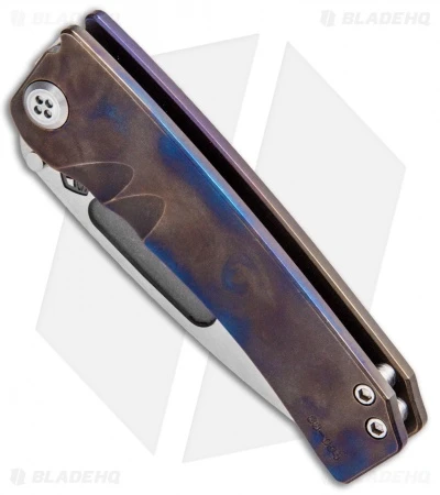 This Dress Marauder model has a flamed titanium handle and pocket clip, and a satin finished blade.