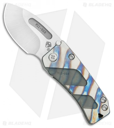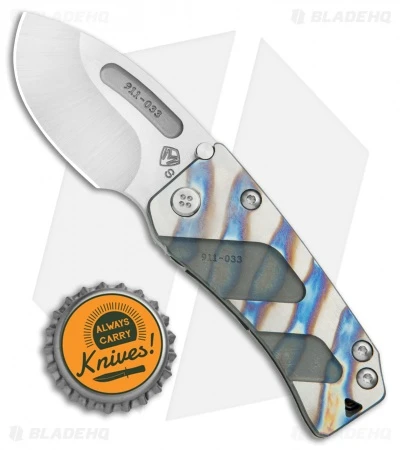 This model of the Medford Hunden features a satin finished blade made from CPM-S35VN and a flame striped titanium handle.