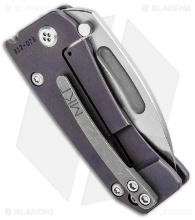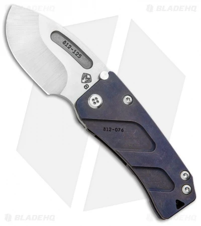 This model of the Medford Hunden features a satin finished blade made from CPM-S35VN and a tumbled violet anodized titanium handle.
