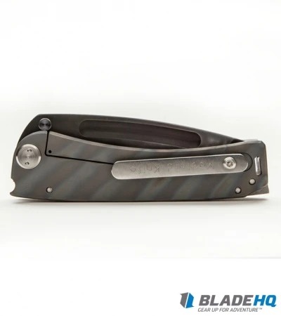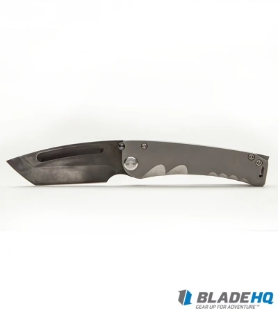The Marauder from Medford Knife & Tool gets its name from the Z-26 Marauder, known for its awesome fire power and toughness. This Marauder features a vulcan heat finished blade with a hollow main and flat secondary bevel. The front handle is bead blast finished titanium and the framelock back is flame anodized. Includes a right hand tip-up carry pocket clip.