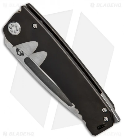 This Marauder-H features a black PVD titanium handle with satin accents. Its tanto blade is made from S35VN steel with a satin finish and a deep thumb groove opener. The Marauder-H comes fitted with a stainless steel backspacer with striking tip, lanyard hole, and a secure tip-up carry pocket clip.