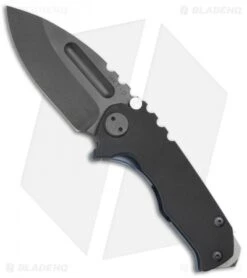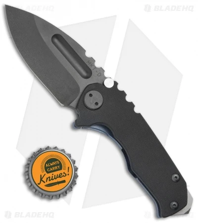 The Micro Praetorian G is a scaled down version of the regular Praetorian and a great size for those looking for a more discreet knife. This Micro has the same build with a 1/8″ thick, blue anodized titanium frame lock and a textured black G-10 scale. It has a tip-up carry black pocket clip, a beefy glass breaker tip, and black finished hardware. This mighty knife has a black PVD coated D2 tool steel blade with no-bull spine texture and a wide thumb groove opener. Comes in a waterproof case.