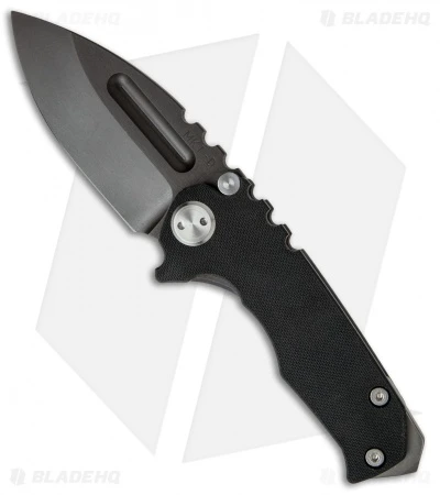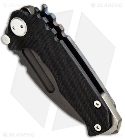 The Micro Praetorian G is a scaled down version of the regular Praetorian and a great size for those looking for a more discreet knife. The Micro has the same build, with a 1/8″ thick, flame titanium frame lock and a textured black G-10 scale. The Praetorian has a tip-up carry pocket clip and beefy glass breaker tip. This mighty knife has a black PVD coated D2 tool steel blade with no-bull spine texture and a wide thumb groove opener. Comes in a waterproof case.
