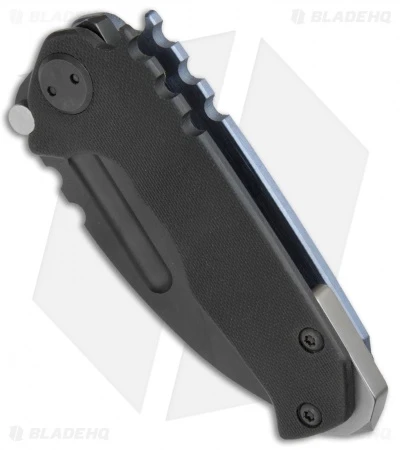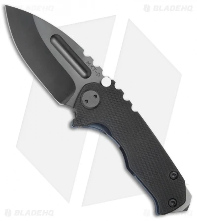 The Micro Praetorian is a scaled down version of the regular Praetorian and a great size for those looking for a more discreet knife. The Micro has the same build, with a 1/8″ thick titanium frame. This model has a black G-10 handle with a blue anodized titanium frame lock. The Micro Praetorian comes with a tip-up carry pocket clip and beefy glass breaker tip. This powerful knife has a black coated D2 tool steel blade with no-bull spine texture and a wide thumb groove opener. Comes in a waterproof case.