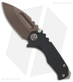 This model has a black G-10 handle with a bronze anodized titanium frame lock and a flamed pocket clip.