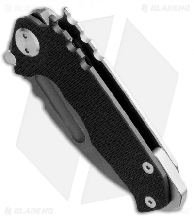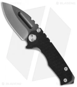 The Micro Praetorian G is a scaled down version of the regular Praetorian and a great size for those looking for a more discreet knife. The Micro has the same build, with a 1/8″ thick, tumbled titanium frame lock and textured black G10 scale. The Praetorian has a tip-up carry pocket clip and beefy glass breaker tip. This mighty knife has a black oxide coated D2 tool steel blade with no-bull spine texture and a wide thumb groove opener. Comes in a waterproof case.