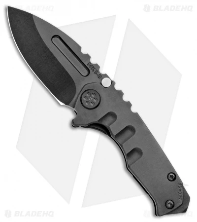 This Medford Micro Praetorian features a black PVD finished titanium handle with a tumbled pocket clip. It sports a drop point blade made from black PVD finished S35VN steel.