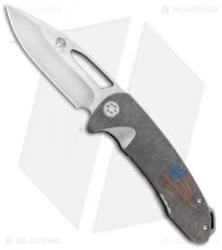 The Medford On Belay frame lock knife features a super durable build with 3/16″ stock throughout. This model is outfitted with a satin finished blade and a tumbled titanium frame lock handle with an American flag graphic. An elongated thumb hole and partial flipper opener allow quick one-handed deployment with a flick of the wrist. The On Belay comes complete with a secure titanium pocket clip and lanyard hole for everyday carry convenience.