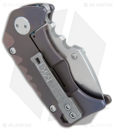 The MKT Panzer is simply compact & rugged. This small, but mighty tanto folder packs a lot of potential in its 3.5″ footprint. The D2 steel blade has a tumbled stonewash finish with a thumb stud opener and dipped thumb rest. This version of the Panzer features a purple ano sculpted titanium handle and frame. A steel glass breaker pommel spacer and a titanium pocket clip finish off the piece. The Panzer is a remarkably comfortable pocket knife. Item comes with a waterproof case.