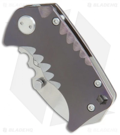 This Panzer model sports a double sculpted titanium handle in a blue ano finish and a tumbled tanto blade.