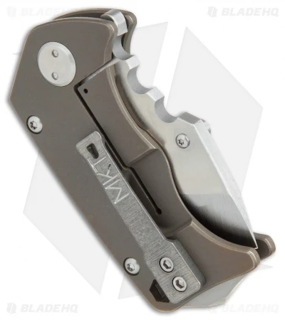 The MKT Panzer is simply compact & rugged. This small, but mighty tanto folder packs a lot of potential in its 3.5″ footprint. The D2 steel blade has a tumbled stonewash finish with a thumb stud opener and dipped thumb rest. This version of the Panzer features a swirl pattern on the titanium handle and bronzed frame. A steel glass breaker pommel spacer and a titanium pocket clip finish off the piece. The Panzer is a remarkably comfortable pocket knife. Item comes with a waterproof case.
