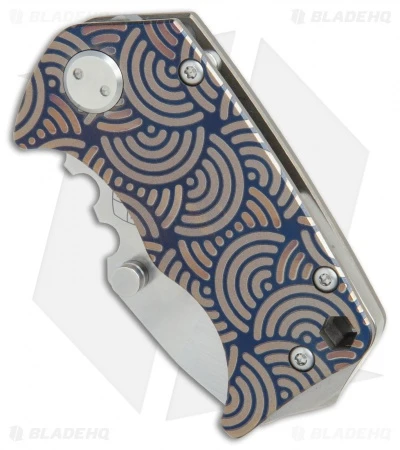 This Panzer model sports a titanium handle with a swirl pattern and a tumbled tanto blade.