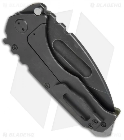 The MKT Praetorian is a big folder in a relatively small package. This mighty knife has a tumbled PVD coated D2 tool steel drop point style blade with no-bull spine texture and a wide thumb groove opener. The handle is OD green G-10 with a black PVD finished titanium frame lock and pocket clip. The Praetorian comes in a waterproof case.
