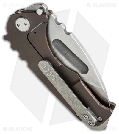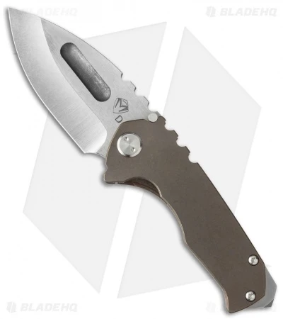 The Medford Praetorian Genesis is a more pocket friendly version of the full-size model, and was the original intended size for the Praetorian design. This knife has a tumbled stonewash D2 tool steel drop point style blade with no-bull spine texture and a wide thumb groove opener. The handle is made from two slabs of bronze anodized titanium. The Praetorian Genesis has a tip-up carry pocket clip and beefy glass breaker tip. Comes in a waterproof case.