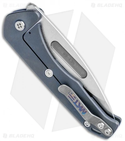 This Praetorian Slim has a blue anodized titanium handle and a satin blade.