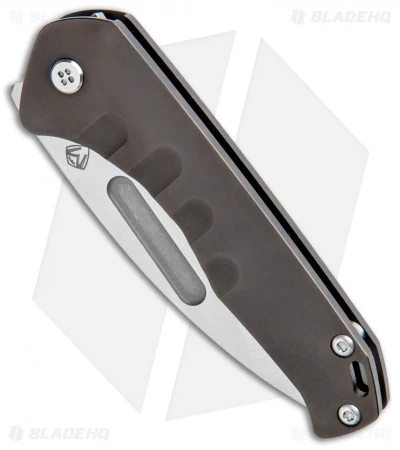 This Praetorian Slim has a PVD coated titanium handle and a tumbled blade.