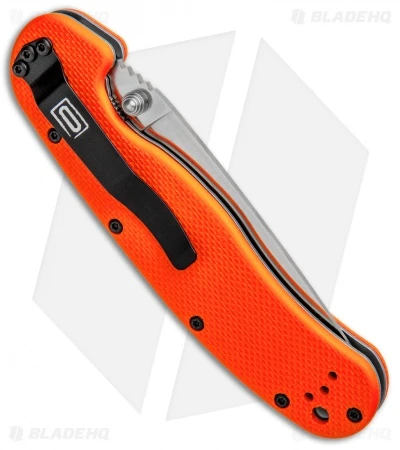 - Textured orange G-10 handle scales.