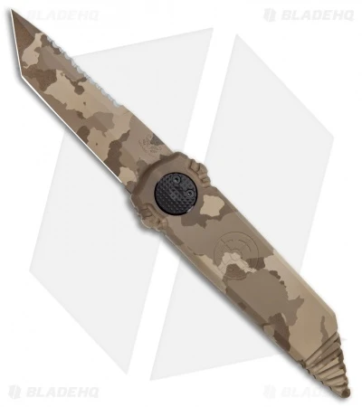 This Dredd Lock model sports a tan camo tanto blade that is double-edged and a tan camo handle.