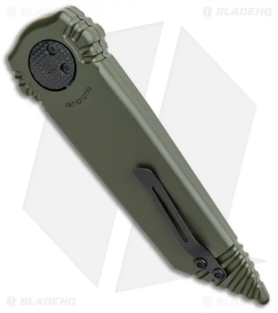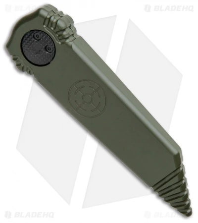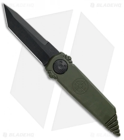 This Dredd Lock model sports a black coated tanto blade that is double-edged and an OD green handle.