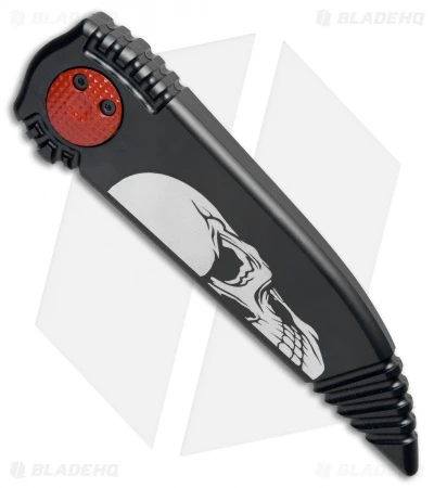 This Phoenix model sports a red cerakote coated blade with a serrated swedge and a black handle with a Death Skull laser etching.