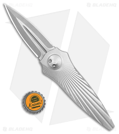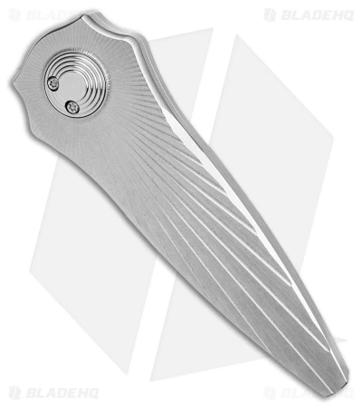 - Silver titanium handle with starburst texturing.