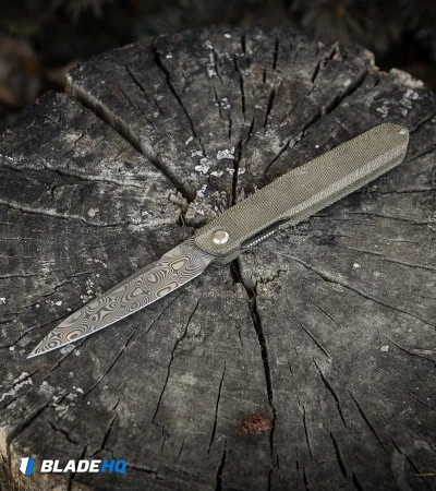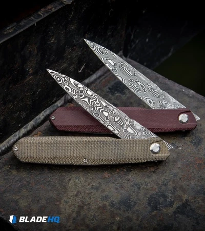 The Real Steel G5 Ultra Metamorph offers a slim, lightweight design for comfortable everyday carry. This model sports a natural textured, canvas micarta handle and a Damascus blade.
