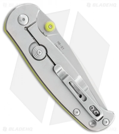 This H6-S1 model has a lime green G-10 handle and a stonewashed blade. The Real Steel H6-S1 offers a convenient EDC design with solid, durable construction.