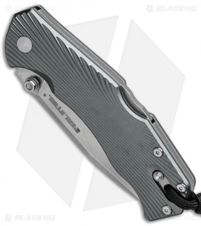 The H7 Special Edition is the sister model of the H7 Snow Leopard with dual thumb stud openers. This model has a stonewash finished blade and a gray aluminum handle.
