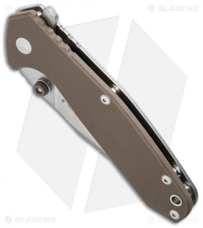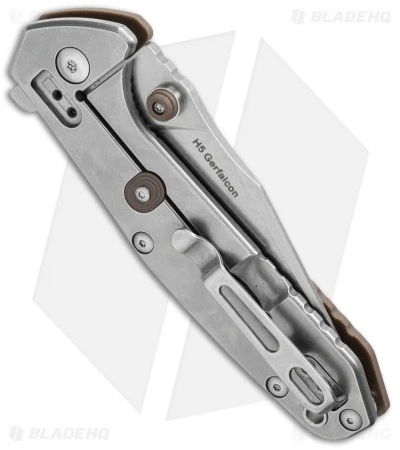 The H5 Gerfalcon flipper is an impressive folding knife with a compact framelock handle and full flat ground clip point blade. The front handle is made from brown G-10, while the frame lock is stonewashed stainless steel, separated by barrel spacers. Matching G-10 thumb stud and lock bar fittings add a nice touch to the look and feel of the H5. The full flat ground blade has a recurved edge and slick flipper opener. The H5 will make a great addition to your EDC rotation.