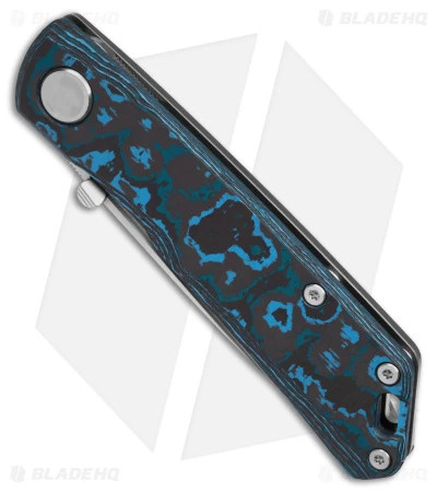 - Blue and black arctic fat carbon handle scale with complex layering.