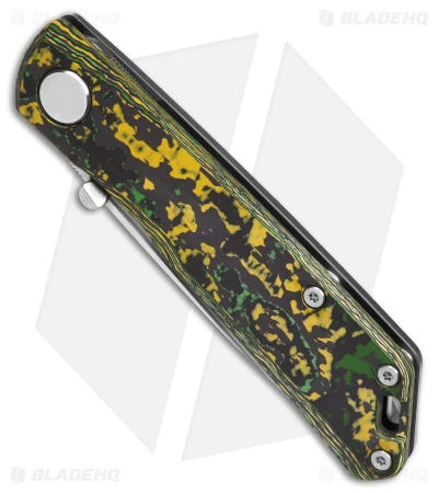 - Yellow, green, and black toxic fat carbon handle scale with complex layering.