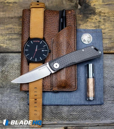 This Blade HQ Exclusive Real Steel Luna sports carbon fiber scales, with N690 blade steel. This classy slip joint knife has satin finished hardware with a satin finished blade.