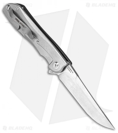 Modeled after the classic Real Steel Megalodon, the Real Steel Megalodon Revival offers the same familiar knife with a few new designs. The drop point blade is made of Bohler N690 stainless steel with a stonewash finish and a flipper opener. The handle has a black carbon fiber front scale with a stonewash finish stainless steel back. It includes a tip-up pocket clip and features a frame lock mechanism.