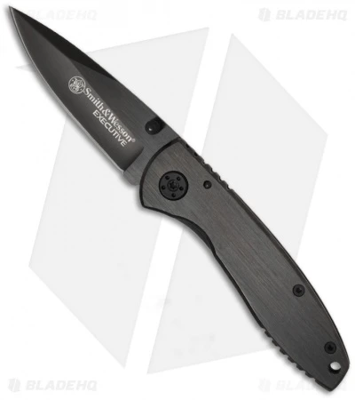 The Smith & Wesson Executive is a classy knife line with titanium finished 440 stainless steel construction. The CK110B has a black finished modified spear point blade with a plain edge and ambidextrous thumb stud for simple one-hand opening. The frame lock handle design has solid lockup and a slim, sleek design. The handle edges are notched as seen in the pictures for increased grip and comfort. The Executive comes with a black finished pocket clip for tip-down carry.