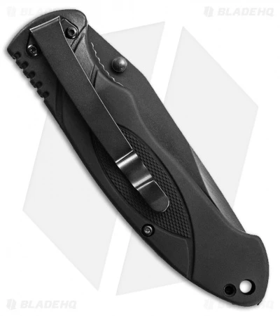 4 1/2″ closed. 3 1/4″ black finish stainless blade with dual thumb studs. Textured black rubber handles. Lanyard hole. Black finish stainless pocket clip.