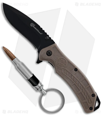 Designed to snap open easily with one hand, this spring assisted opener from Smith and Wesson does half the work for you so you’re super-fast on the draw. The pocket knife has convenient deployment with thumb studs or a flipper opener, and you know it’s always great fidgety fun when you have options. The extended tang adds strength to the knife. The lanyard hole also gives you options, and the textured handle gives you solid grip. Big bonus: this cool pocket knife comes with a bullet keychain bottle opener.