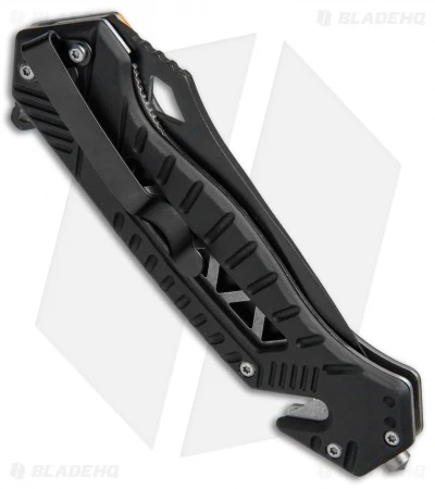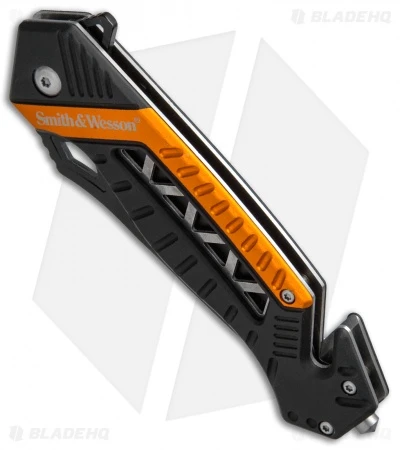 This Smith & Wesson Rescue knife features a black and orange aluminum handle, and a black finished blade with a partially serrated edge. Combining a slim EDC design with emergency rescue features, this useful folding knife makes an ideal daily companion. The handle is outfitted with a stainless steel liner lock, glass breaker, strap cutter, and a deep carry pocket clip. The blade opens with a flipper or thumb hole and has a black finish. Be ready for anything with the Smith & Wesson Rescue knife.